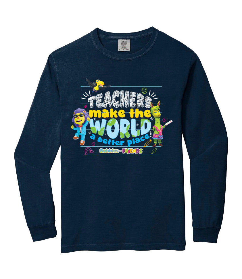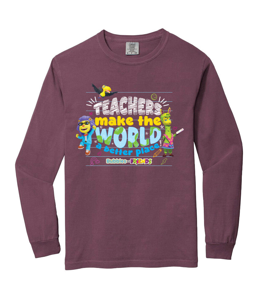 Bubbles & Friends Teacher Appreciation World Long Sleeve Adult T-Shirt